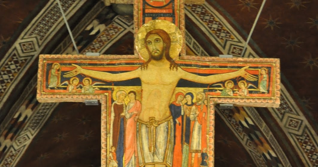 "Nos encontramos na Capela da Basílica de Santa Clara que custodia a Cruz de São Damião que falou a Francisco no início do caminho de sua conversão: “Francisco, vai e reconstrói a minha Igreja, que está em ruínas!”. Giotto eternizou este momento com um afresco na Basílica de Assis", disse o Diretor da Sala de Imprensa do Sacro Convento de Assis, Padre Enzo Fortunato.